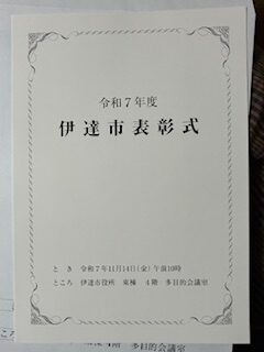 毎年伊達市では、「市政全般にわたり功績があり並びに市民の模範となるような顕著な功績のあった人」を対象に「伊達市表彰式」が行われています。
